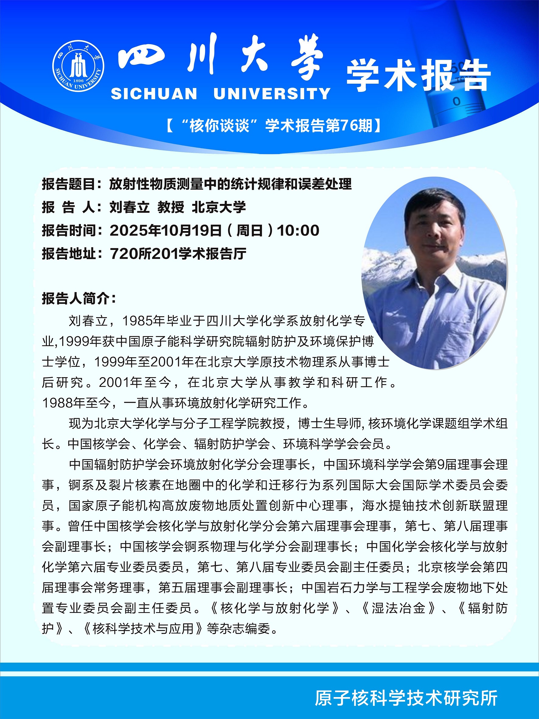 【“核你谈谈”学术报告第76期】刘春立教授:放射性物质测量中的统计规律和误差处理