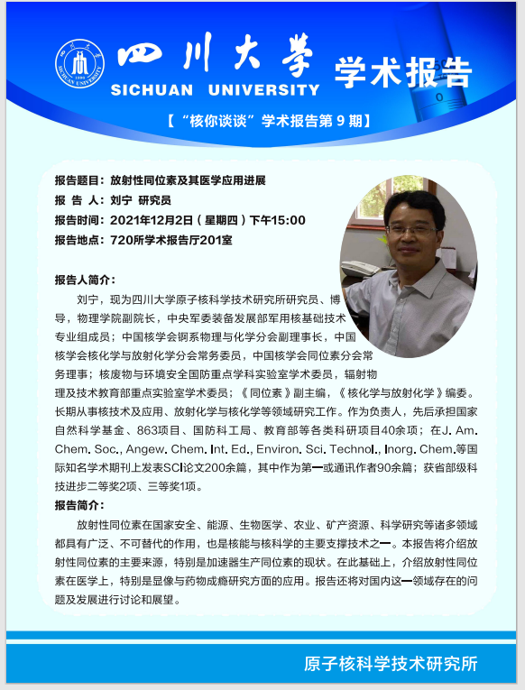 【“核你谈谈”学术报告第9期】刘宁研究员:放射性同位素及其医学应用进展